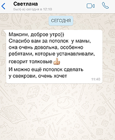 На странице готовых работ вы можете ознакомиться с уровнем качества и разнообразия покрытий, с помощью калькулятора онлайн просчитаете свой будущий потолок, а по телефону вызовите замерщика для уточнения стоимости полотна вместе с работой.