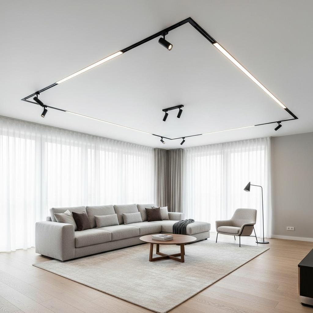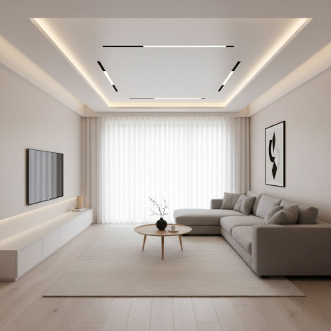 В зависимости от задач потолок с линейной подсветкой можно использовать в качестве основного или декоративного освещения. В СЛОТТ системе есть демпферные профили черного цвета (слотт40 и слотт80) двух размеров, которые созданы не для подсветки, а для создания различных ниш и конструкций. Их применяют для размещения в нише направляемых светильников, монтажа трек-системы, или используют в качестве контрастной декоративной ниши на потолке.