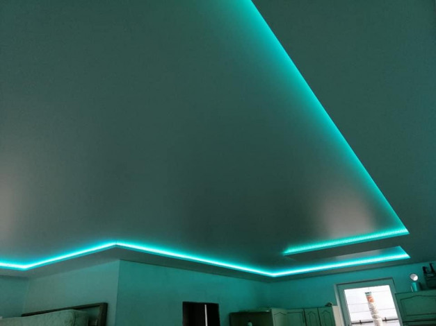 При монтаже можно выбрать цветовую гамму подсветки и мощность светодиодных лампочек. Потолочное покрытие имеет очень много достоинств, а именно: