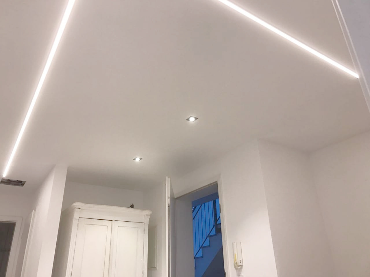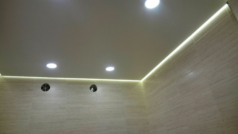 Бесщелевой натяжной потолок 8 м² со светильниками