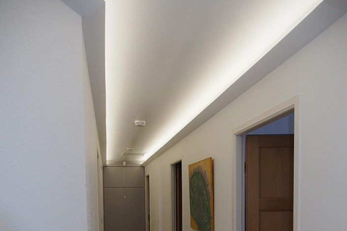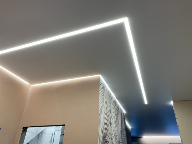 По периметру, над полотном, между уровнями многоярусных покрытий. Принять решение вам поможет наш дизайнер.