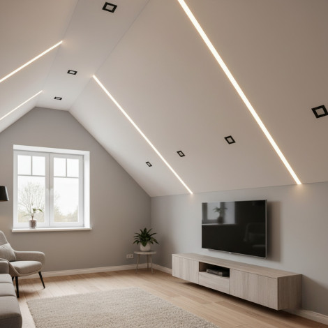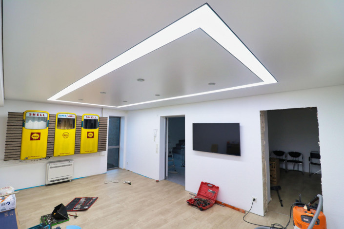 Такая потолочная конструкция обеспечит не только идеальное освещение, но и уникальный дизайн дома, квартиры, офиса или другого помещения в Омске. С помощью формы, длины и расположения парящих линий можно зонировать пространство, визуально исправить форму комнаты, а также создать неповторимый интерьер.