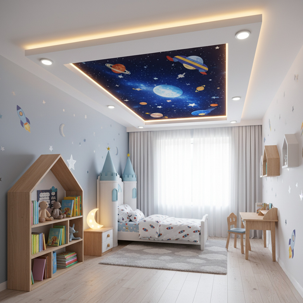 Эти популярные потолочные конструкции родители ценят за большое разнообразие вариантов, возможность нестандартного исполнения, а также за надежность, практичность, простоту монтажа.
