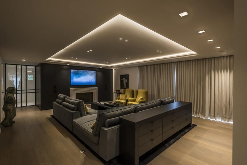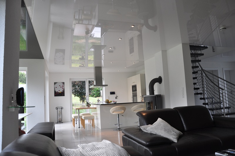 - скрыть все неровности потолочной поверхности, а также визуально увеличить или уменьшить помещение;